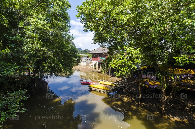 Мангровые леса на берегах залива.Тайланд