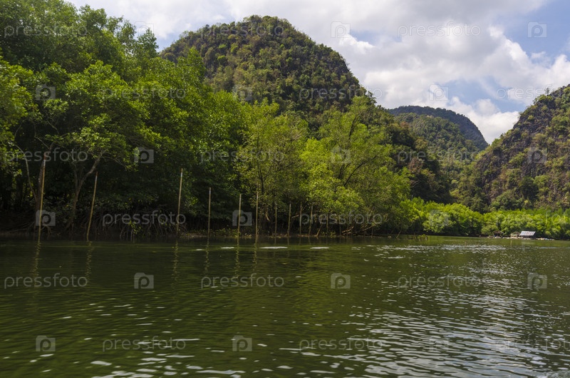 Мангровые леса на берегах залива.Тайланд