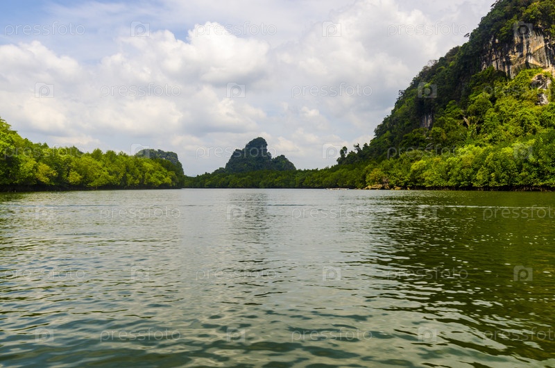Мангровые леса на берегах залива.Тайланд
