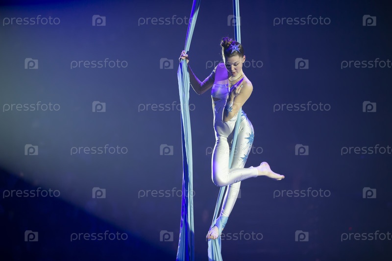 Девочки выполняют аэрокробатические элементы на ткани