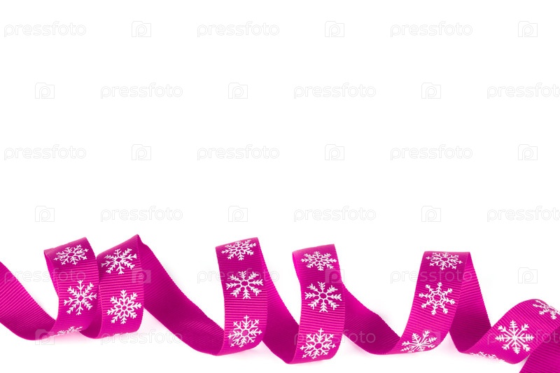 Рождественская лента розовая с белыми снежинками с авторским правом