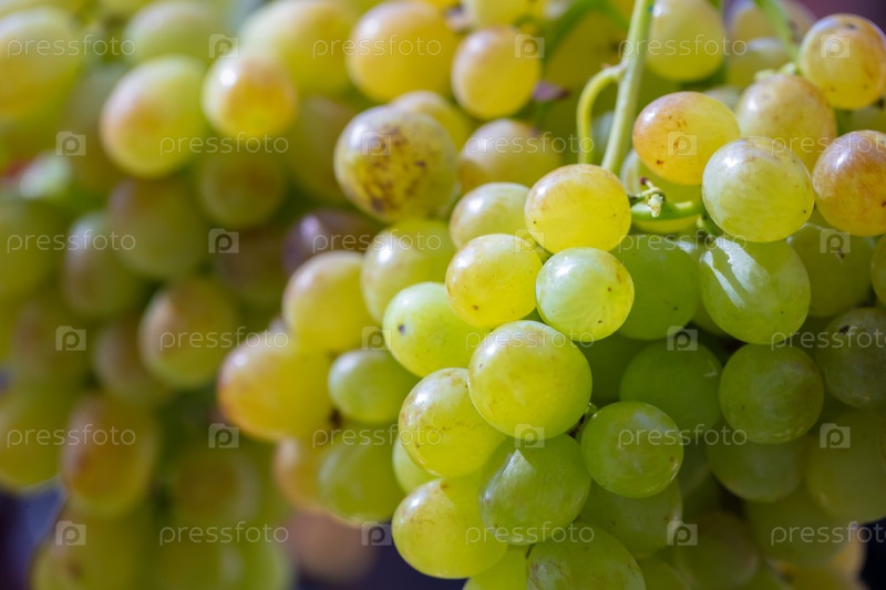 Кластеры элитных зеленых сортов винограда с близкими ягодами