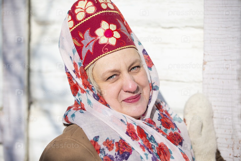 Большой портрет пожилой русской женщины в национальном головном уборе Кокошников