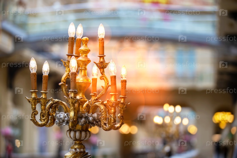 Современная лампа из канделабрума в винтажном античном стиле. ретро дизайн