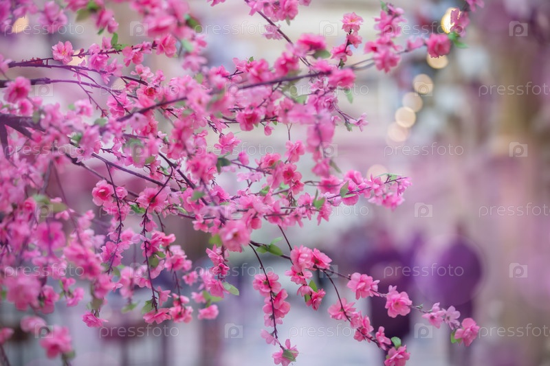 Искусственное разветвление сакуры как элемент дизайна на розовом фоне