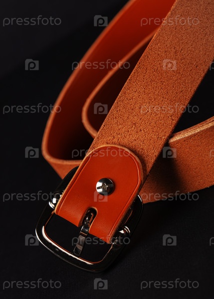 Коричневый пояс с серебряным запором, который находится слева от пояса
