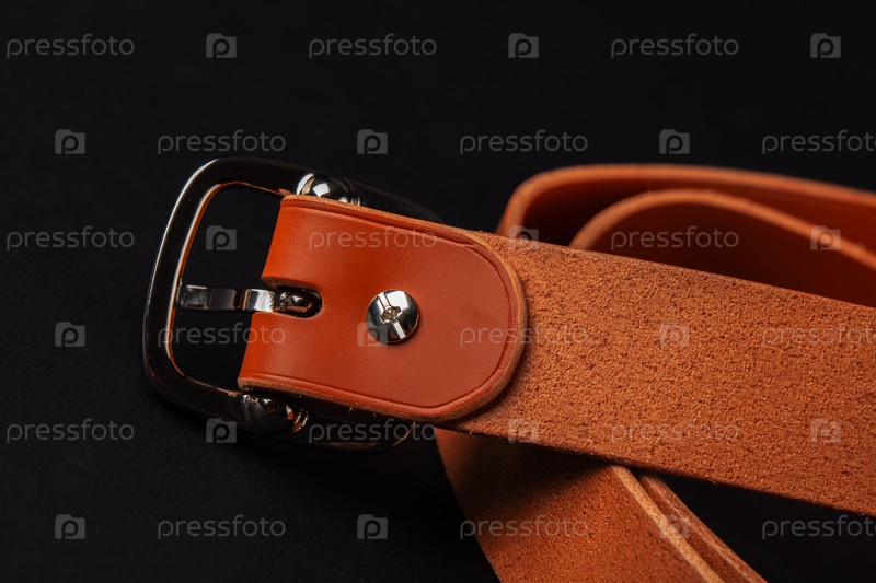 коричневый пояс с серебряным застежкой. застежка находится на левой стороне пояса. ремень изготовлен из кожи