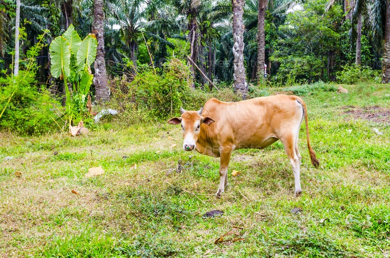 Корова пасется на краю леса
