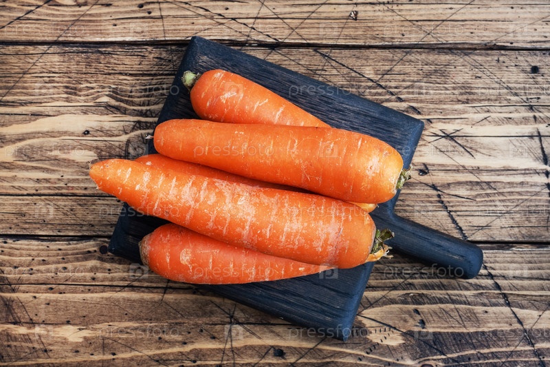 Некоторые сырые морковь на деревянном рустическом фоне