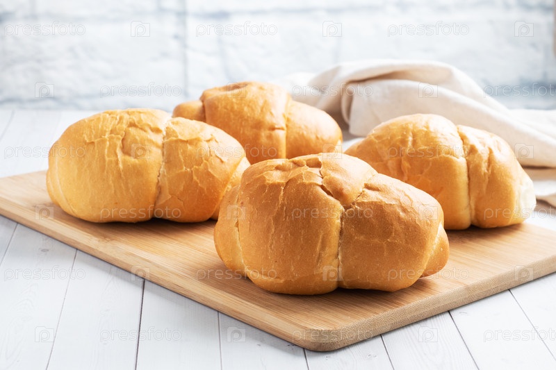 Свежий хлеб из пшеницы роллы для хот-догов или гамбургеров белый фон копия пробела