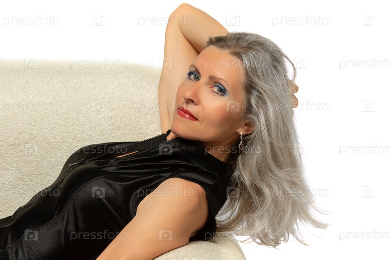 Красивая женщина в возрасте около пятидесяти лет с длинными седыми волосами