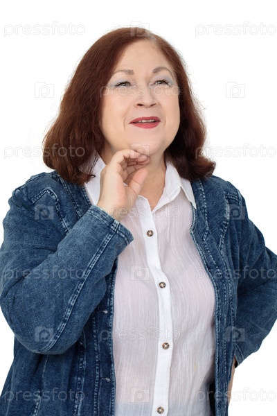 Счастливая пожилая женщина в возрасте шестидесяти лет улыбается и поддерживает ее шею