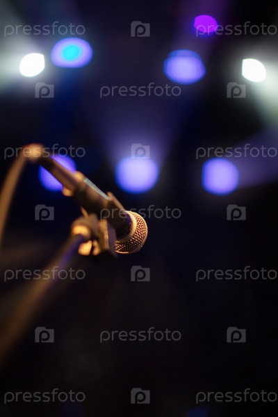 Лучи от концертных прожекторов освещают микрофон