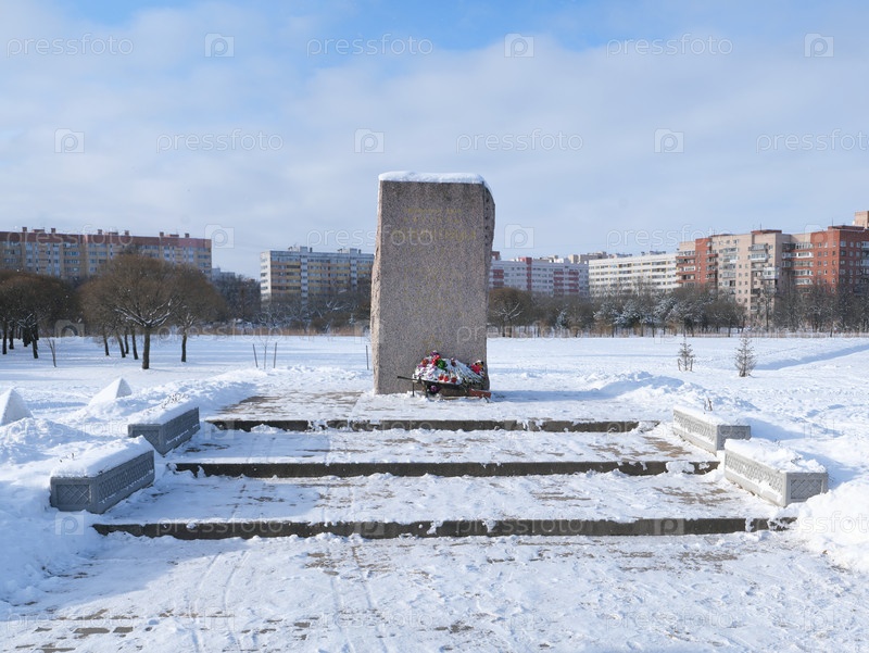Стела 'Предняя линия обороны Ленинграда 1941-1944' в зимний день