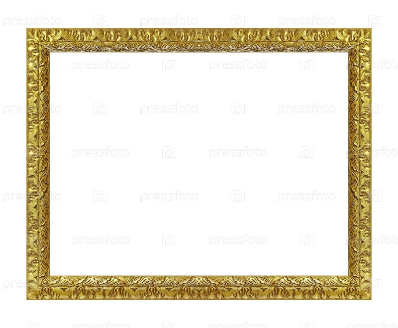 Золотая рама для картин, зеркал или фотографий, изолированных на белом фоне