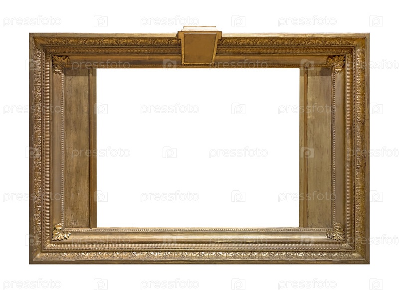 Золотая рама для картин, зеркал или фотографий, изолированных на белом фоне