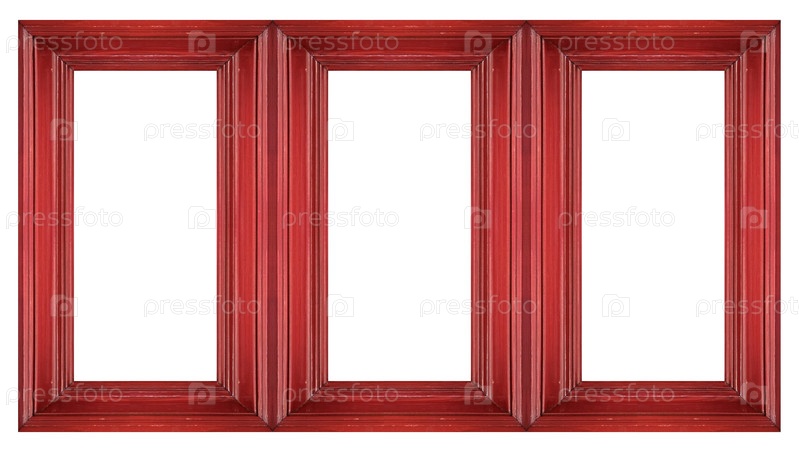 Тройная красная деревянная рама (триптих) для картин, зеркал или фотографий, выделенных на белом фоне