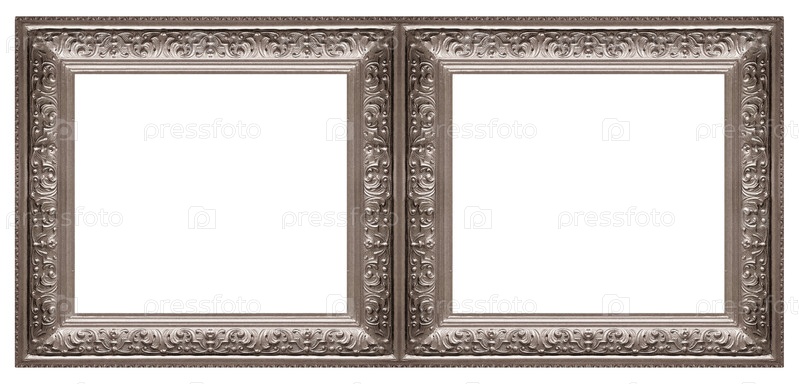 Двойная серебряная рама (диптих) для картин, зеркал или фотографий, выделенных на белом фоне