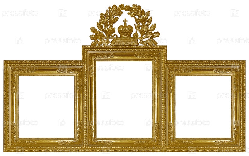 Тройная золотая рама (триптих) для картин, зеркал или фотографий, выделенных на белом фоне
