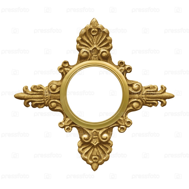 Золотой декоративный элемент с цветочным узором выделен на белом фоне