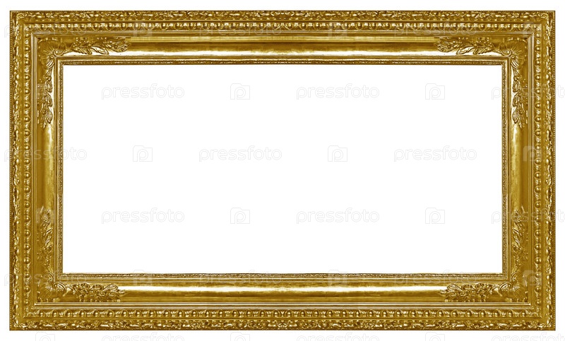 Золотая рама для картин, зеркал или фотографий, изолированных на белом фоне