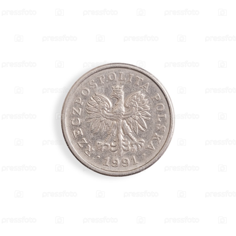 Польская монета 10 пенсов. польская надпись 'Polish Lithuanian Commonwealth of Poland' на английском языке. элемент дизайна с подстриженной дорожкой