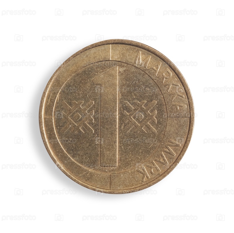Старая финская монета 1 Финская марка выделена на белом фоне