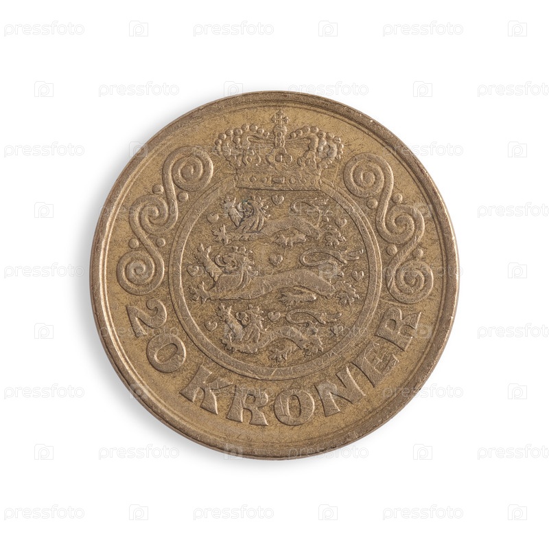 Датская надпись на английском языке означает королеву Дании Маргарет II. 20 крон