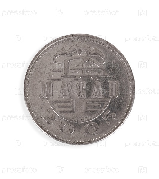 Макао чеканит одну патаку с двух сторон, изолированную на белом фоне