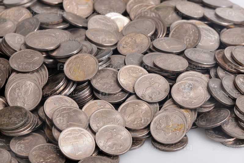 Много российских монет (1 пенни, пени). изолированный фон