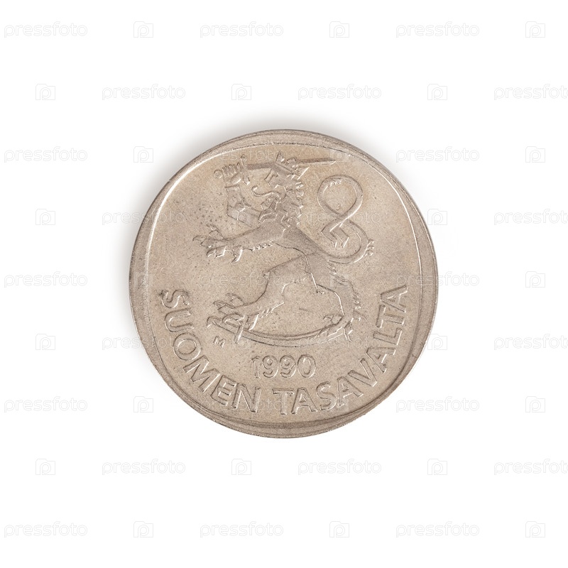 Старая финская монета 1 Финская марка выделена на белом фоне