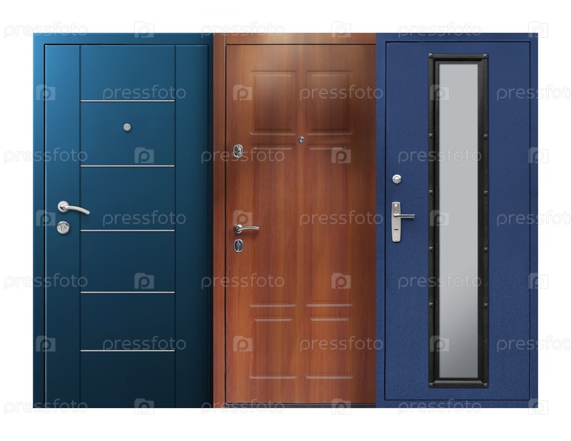 Модель металлических входных дверей, изолированная на белом фоне