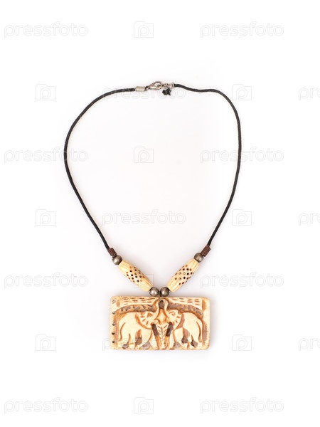 Этническое ожерелье с костной подвеской со слонами, изолированными на белом фоне