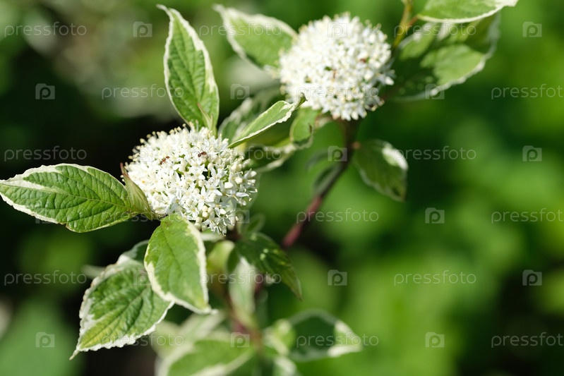 Одинокий Cornus alba (собачье дерево) цветет в мягком фокусе