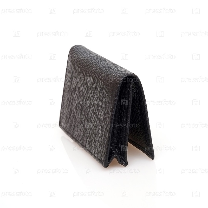 Держатель визитных карточек с черной кожей, изолированный на чёрном фоне