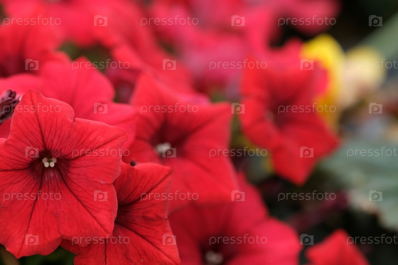 Красная петуния в ботаническом саду как естественный фон