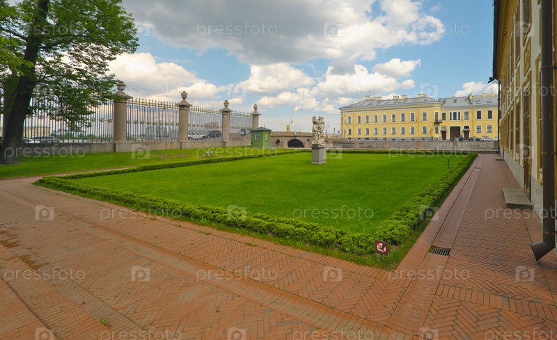 Летний сад, летний дворец российского императора Петра I, скульптура 'Мир и победа'. аллегория на Нистадский договор и знаменитый забор