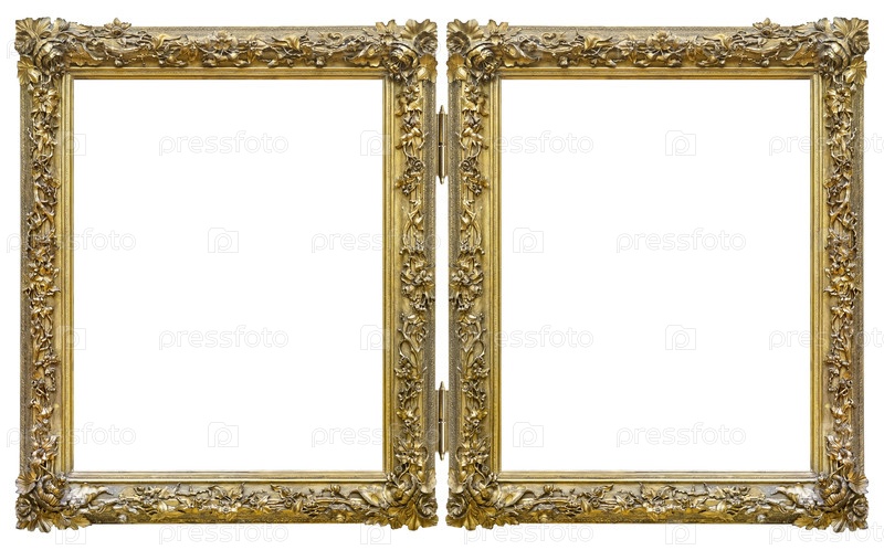 Двойная золотая рама (диптих) для картин, зеркал или фотографий, изолированных на белом фоне