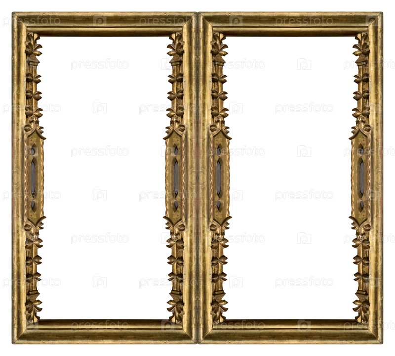 Двойная готическая золотая рама (диптих) для картин, зеркал или фотографий, выделенных на белом фоне