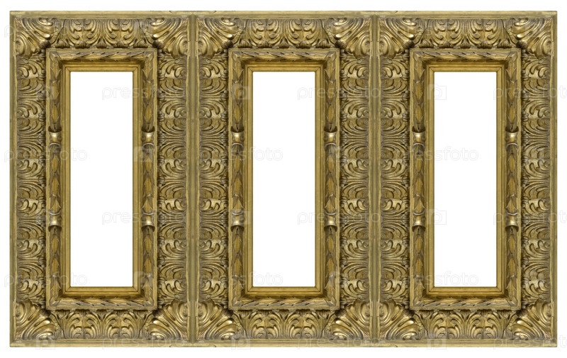 Тройная золотая рама (триптих) для картин, зеркал или фотографий, выделенных на белом фоне