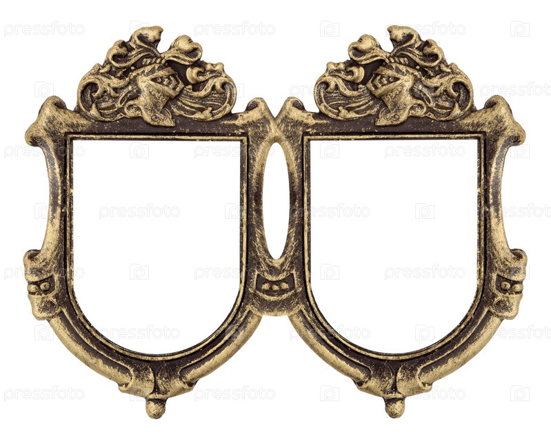 Двойная золотая готическая рама (диптих) для картин, зеркал или фотографий, изолированных на белом фоне