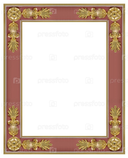 Золотая рама для картин, зеркал или фотографий, изолированных на белом фоне