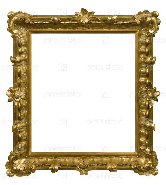 Золотая рама для картин, зеркал или фотографий, изолированных на белом фоне