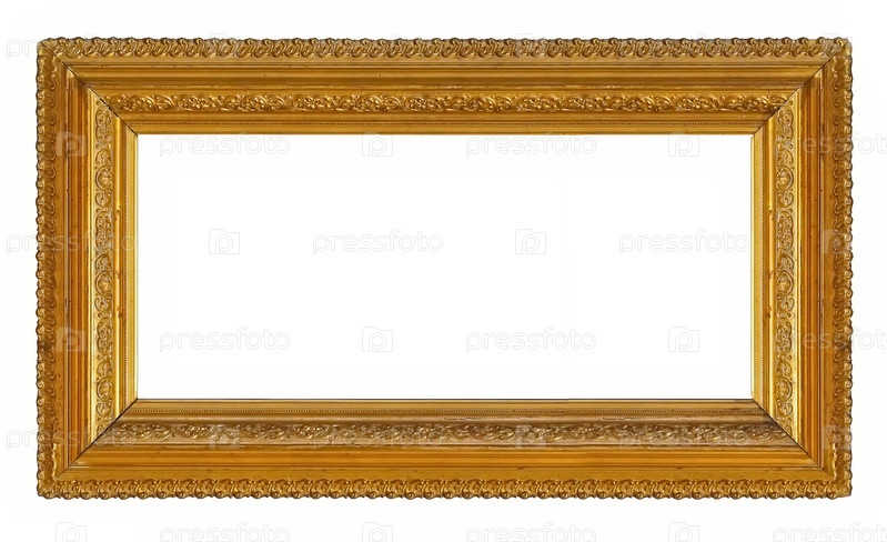 Панорамная золотая рама для картин, зеркал или фотографий, изолированных на белом фоне