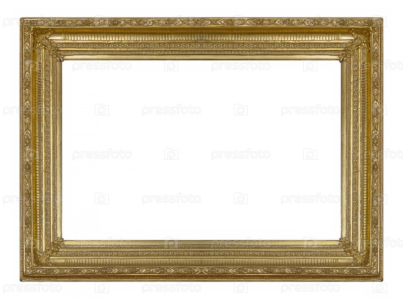 Золотая рама для картин, зеркал или фотографий, изолированных на белом фоне