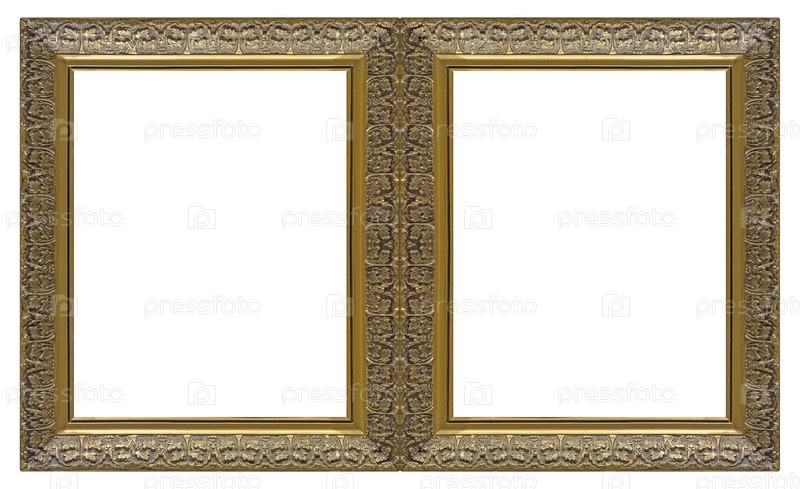 Золотая рама для картин, зеркал или фотографий, изолированных на белом фоне