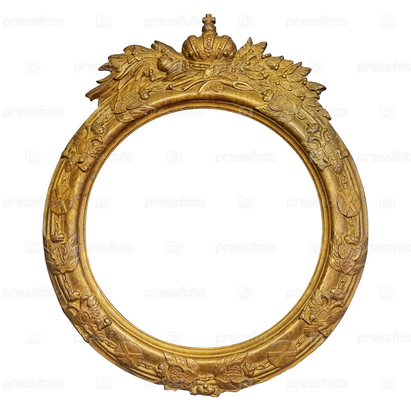 Золотая рама с короной для картин, зеркал или фотографий изолирована на белом фоне