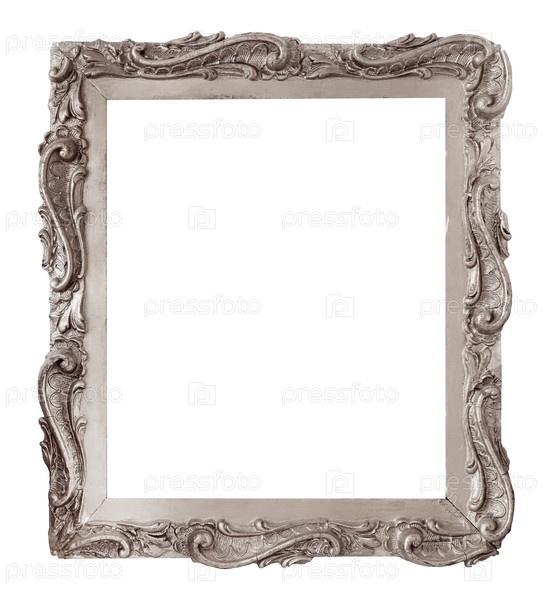 Серебряная рама для картин, зеркал или фотографий, изолированных на белом фоне