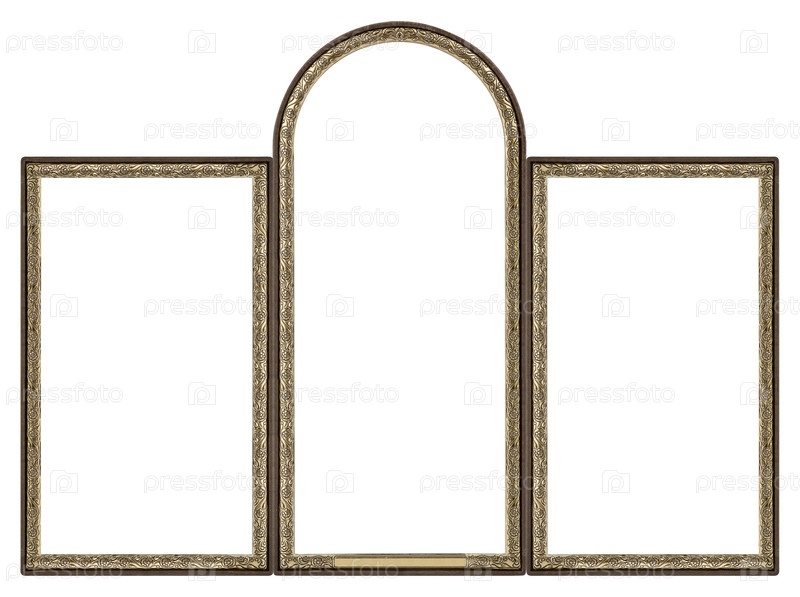 Тройная деревянная рама (триптих) для картин, зеркал или фотографий, выделенных на белом фоне