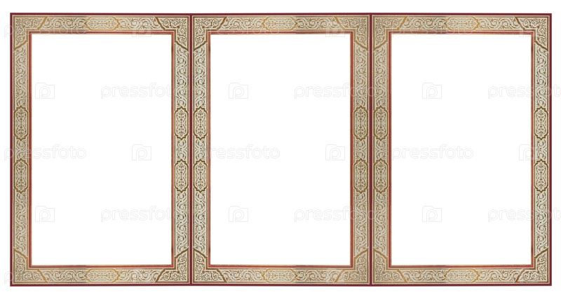 Тройная золотая рама (триптих) для картин, зеркал или фотографий, изолированных на белом фоне